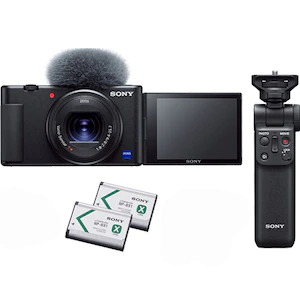 VLOGCAM ZV-1G シューティンググリップキット (B) [ブラック] Vlogコンテンツの撮影に特化したデジタルカメラ「VLOGCAM ZV-1」本体とワイヤレスリモートコマンダー機能付きシューティンググリップのセット。 ケーブル不要で手元のズームや撮影操作を可能にするBluetooth対応・三脚機能付きシューティンググリップ「GP-VPT2BT」とバッテリーパックを同梱。 本体の可動式液晶モニターと組み合わせることでVlog、自撮り、ハイアングルやローアングルなど、多様なスタイルでの撮影を可能にする。