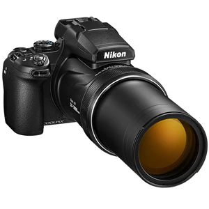 COOLPIX P1000 光学125倍ズームを搭載したコンパクトデジタルカメラ。広角24mmから3000mm相当の超望遠光学125倍ズームを、気軽に持ち歩けるボディサイズで実現。 3840×2160/30p対応、最長約29分のステレオ音声付き4K UHDムービー撮影が可能。フルHDの4倍の高画素で撮れるので、超望遠撮影時にも被写体の細部まで表現。 ピント合わせや露出補正などの機能を割り当てできるコントロールリングを搭載。画質の劣化を気にせず画像編集が可能な、独自のRAW(NRW)ファイルに対応。