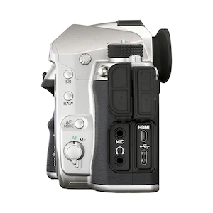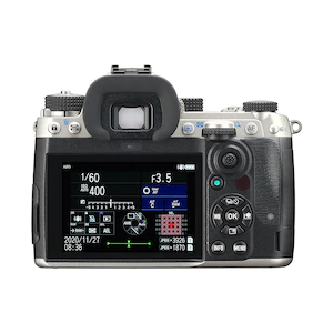 PENTAX K-3 Mark III ボディ [シルバー] APS-Cサイズデジタル一眼レフカメラのフラッグシップモデル。視野率約100%、ファインダー倍率約1.05倍の光学ファインダーを搭載。 APS-Cサイズ相当で有効約2573万画素の高精細な画像が得られる、ローパスフィルターレス仕様の裏面照射型CMOSイメージセンサーを採用。 5軸・5.5段の高性能手ブレ補正機構「SR II」を搭載。直感的なタッチ操作が可能な3.2型高精細液晶モニターを採用している。