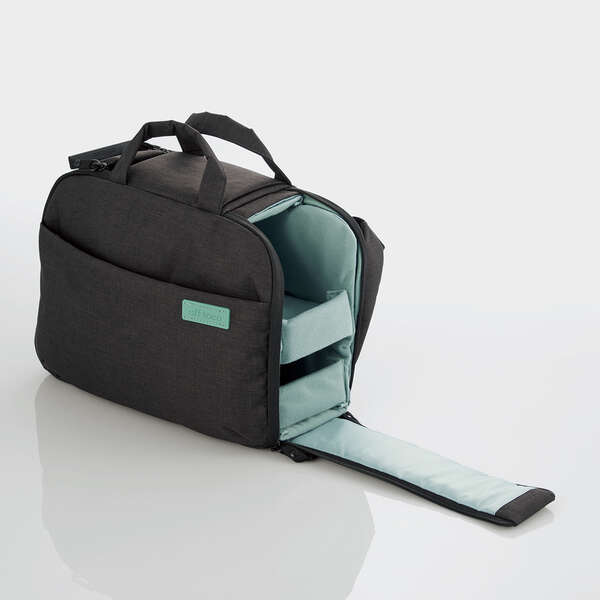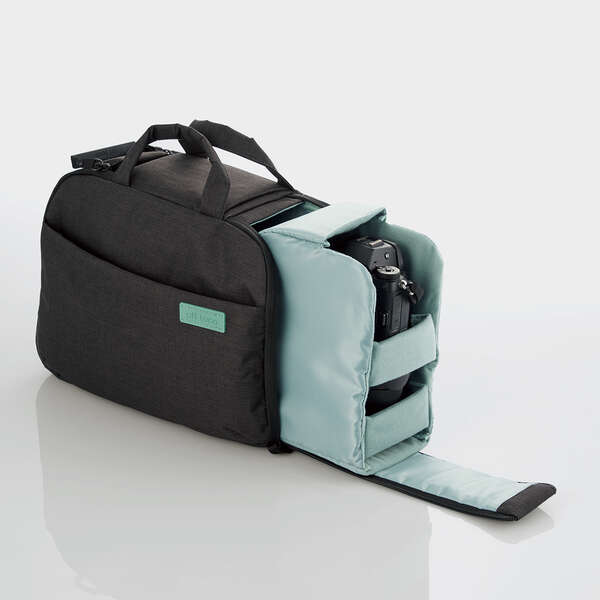 カメラを持って行くときはインナーケースをセットしてカメラバッグとして、カメラを持って行かないときはインナーケースを外して通常のバッグとして普段使いできる2STYLE仕様です。 ハンドルを引きワンタッチで両側面からカメラ・レンズを素早く取り出し可能です。 開閉ハンドルをポケットに隠すことで簡易ロックされ、不意に開いてしまうリスク軽減や盗難防止に役立ちます。 中央のファスナー式仕切りを開くことで、二気室から一気室のバッグへ切り替えて使用できます。 11インチまでのタブレットが収納できる専用ポケットを装備しています。 外寸(mm):幅320mm×奥行130mm×高さ240mm 本体重量:約600g 付属品:カメラインナーケース×1、仕切板×2 材質:表面:ポリエステル(撥水加工)/裏面:ポリエステル